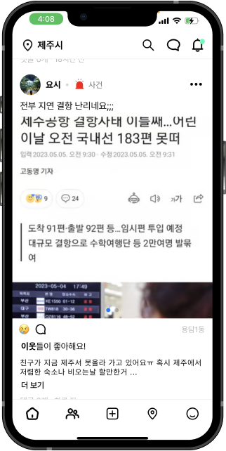 Instagram, Facebook 등 SNS를 사용하면서 내 지역 SNS도 있었으면 좋겠다고 생각했는데, 이렇게 이용할 수 있게 되어서 되게 재밌어요 !! 근처 사람들 얘기라 공감도 되고, 더 많이 보게 되는 것 같아요😊